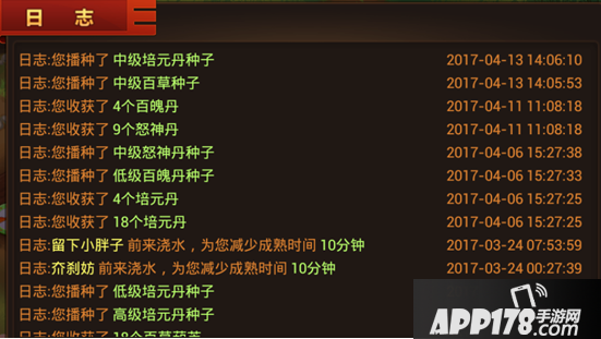 日志则是记录你的在什么时间播种种子什么时间收获了种子的系统,并且可以看到哪位好友前来为你浇过水。