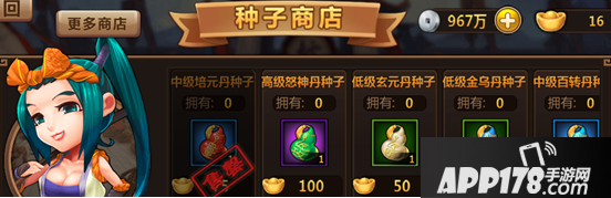 种子商店就是提供给我们购买种子和催药剂的地方,在里面使用元宝或银币即可购买物品。