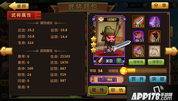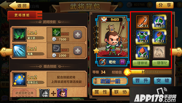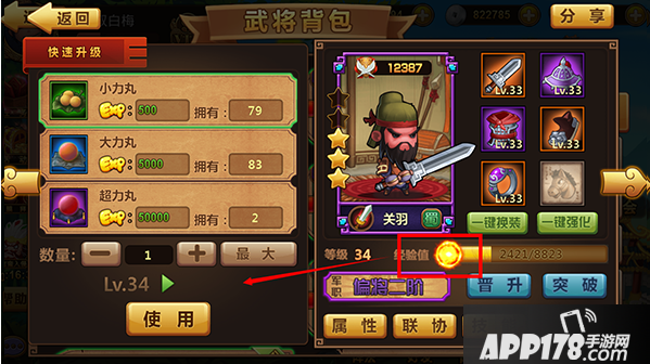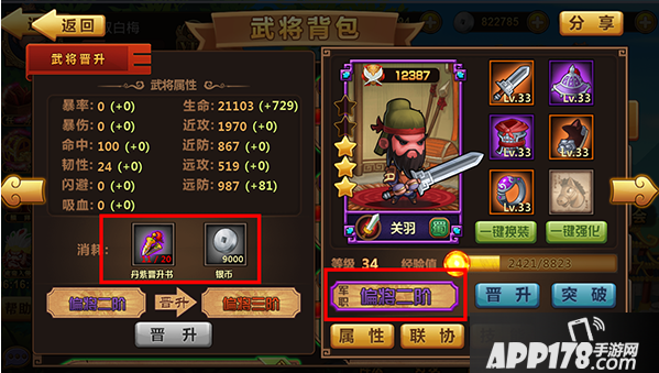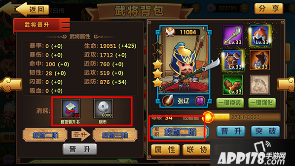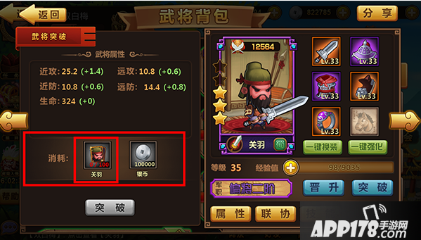 【突破】需要武将碎片,集齐一定武将碎片即可进行突破,提升武将星级。