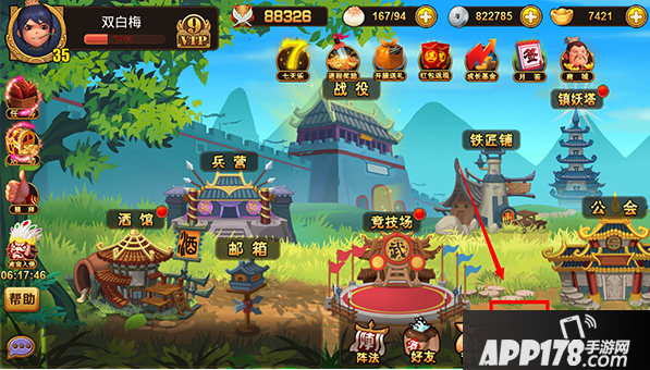 首先,通过主界面下方按钮进入武将界面。