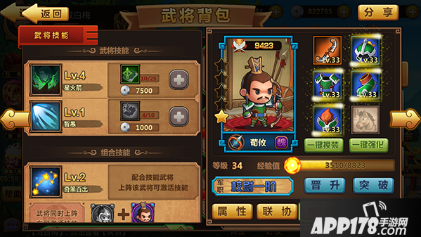 武将需要升级、晋升、突破、升级技能、穿戴装备。