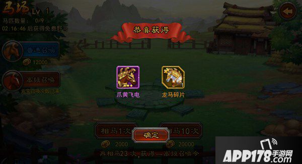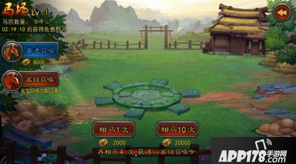 战马界面中左侧分为普通召唤和高级召唤,高级召唤,玩家们需要召唤出一只战马才可进行相马