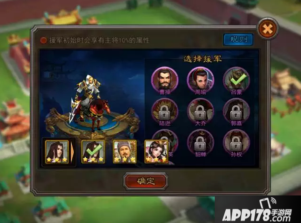 如前文所述,援军将按比例继承主将的属性。除了提升主将实力来确保援军强势外,援军系统还设置有天赋点,使不同援军能够被灵活培养。