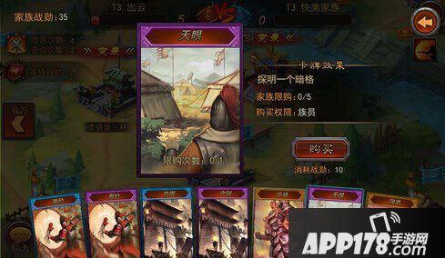 与国战中的策略卡相似,5.0版本的家族战中加入了”锦囊妙计”按钮,锦囊卡通过家族战勋兑换,除了增幅buff外,还有天眼、强袭和武神三类强力锦囊,帮助家族攻坚。