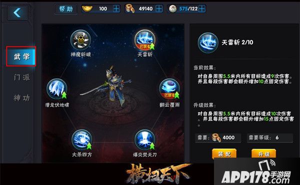 可消耗铜钱进行武学技能升级。升级可提升技能效果。