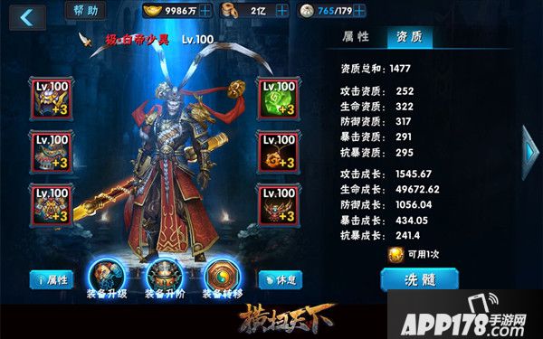 天命战神的成长对应天命战神的每项战斗属性,是由系统随机生成的。天命战神的成长越高,天命战神升级后增加的战斗属性越高。天命战神洗髓需要特定的道具。每次洗髓都会重新生成天命战神的成长。