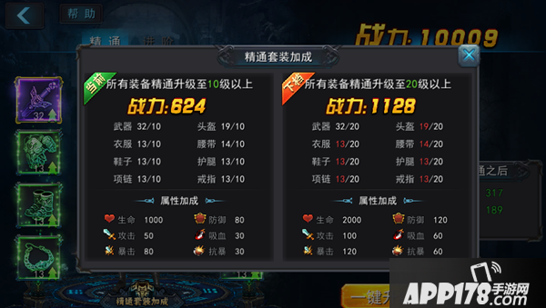 装备精通套装越高,所加成的属性越高,附加战力值越高,收益性价比也非常的高。