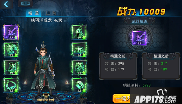 装备精通界面中,每次精通都会显示强化预览后能得到的能力值,并会标注精通所需要的铜币数量,要想装备精通越高,必须获得大量铜币。没有铜币的情况下可以用元宝代替噢!