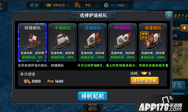 3.日常中的【乘风破浪】可以护送船只,品质越高的船只奖励的经验越多,此活动的奖励的经验值也是与玩家等级相关,等级越高,同等品质的船只等级越高的获得经验越多。