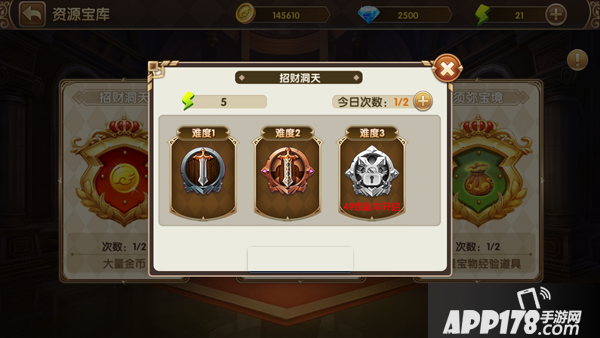 选择招财洞天,出现难度选择,只有通关上一难度才能选择下个难度喔~什么?你问要怎么通关?接着看接着看~