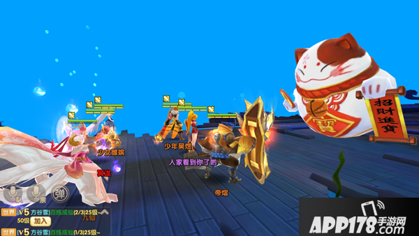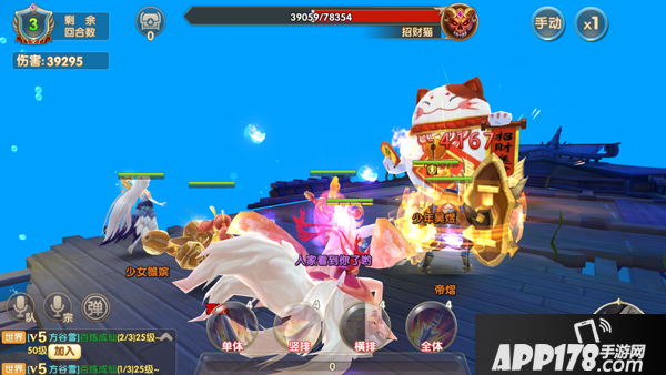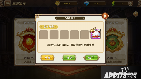进入战斗!其实在招财洞天的战斗中,招财猫并不会攻击玩家,你只需要使劲揍招财猫就行啦,系统会根据你限定回合数里造成的伤害来奖励金币。