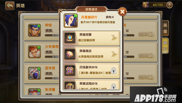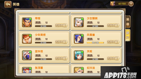 只有招募一种途径获得角色?怎么可能嘛,如果获得足够多的英雄碎片,就可以合成英雄!打开英雄列表进入英雄碎片界面,可以看到当前拥有的英雄碎片。