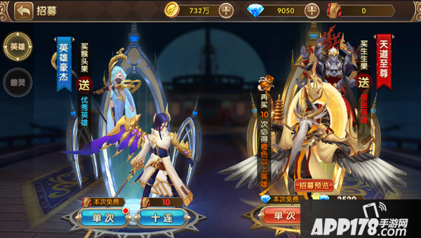 《幻世战仙》中,角色的获得主要依靠招募系统。招募系统分为两类,使用招募券的招募英雄池较次,使用钻石则能抽到上佳的英雄。