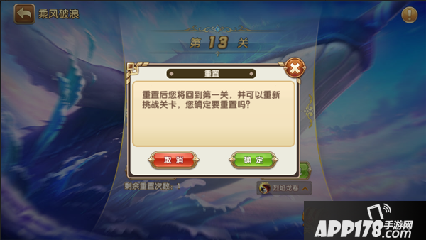 大家一定会问,乘风破浪通到一定关卡打不过去了,那这活动还能干什么呢?难道放在这里不动?别急,即使你实力不是很够,无法通过下一关,那么乘风破浪依旧有事可做,那就是重置和扫荡。