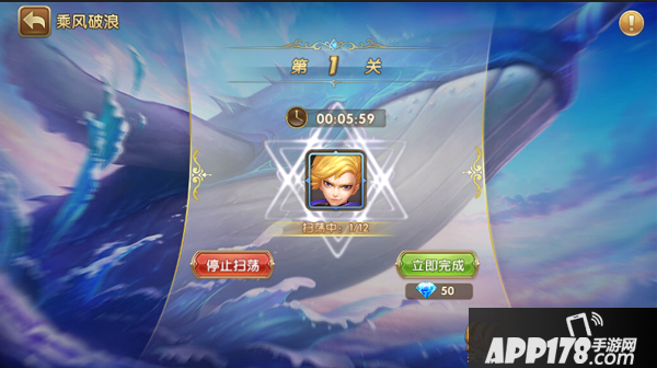 每天有一次重置乘风破浪的机会,重置后执行扫荡命令,你只需要等待那么几十分钟时间,就可以使你闯过的所有关卡瞬间扫荡完成!当然,那些通关奖励也会尽情收入囊中。