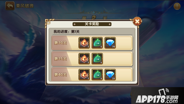 乘风破浪是一个闯关式的活动,预先定好阵容和技能之后,就能一键进入闯关。是的,又是一个你发会呆就能完成的活动~