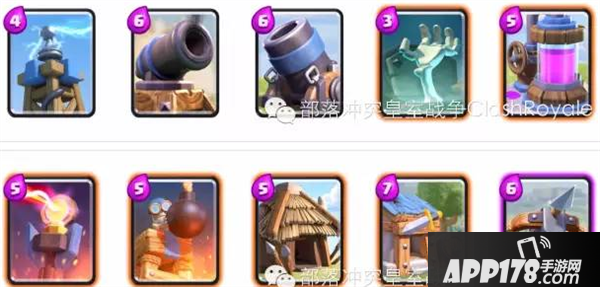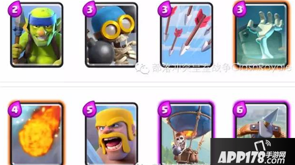 这6张史诗卡牌中,一般都会有2种以上,配合之前推荐的6张卡牌,可以组成一套不错的上分卡组。如果拥有X连弩,可以考虑选择这张做为固定的核心卡牌,因为X连弩往往能在消耗战中找到机会“偷掉”对方的护卫塔。最后一张的话,比较推荐用空中爆发的气球兵,因为气球兵相比于王子的突进,不会受到骷髅兵或者野蛮人的干扰,且爆发输出高。所以,在这个阶段,我们可以总结出一套容易组成的的兼顾防守与输出的上分卡组。