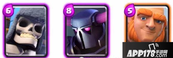 这三张卡牌的相同特点是“肉”,在有肉盾顶在前线的时候,配合一些低圣水消耗的远程屌丝兵在后排输出往往能取得不错的效果;缺点是移动速度太慢。