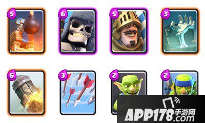 半自闭卡组:坤哥采用了这套卡组,这套卡组是以防守向为主,骷髅巨人能有效防守各种强力部队,而炸弹塔和骷髅墓碑能有效的保护自己的塔不受伤害。伺机利用王子去抢血,利用火箭收尾。这个套牌相对缓慢但更加稳健,对手如果没有好的攻坚手段就无法取胜。但自闭卡组容易陷入防守或部队打不到塔导致伤害不足被逼平是套牌的一大问题。