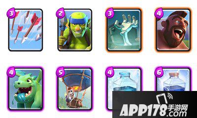 作为满级(12级)和满卡(白卡12级、橙卡10级、紫卡8级),“钟培生”的最新卡组是“野猪气球冰冻流”,之前他用的木筒、火箭(核弹)都被其他卡替换掉了。