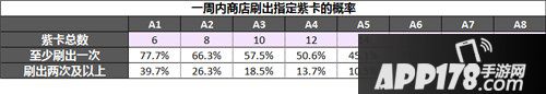 即使A7、A8解锁全部紫卡,一周之内刷出你想要紫卡的概率也是很可观的,更有不算太渺茫的概率刷出2次以上。