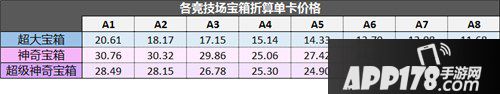 最终得到的单卡价格就是该宝箱的性价比,单卡价格越低说明性价比越高。楼主把商城宝箱的部分单独整理成表格方便观看: