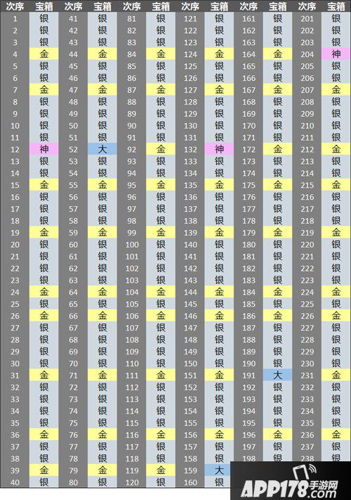 战斗胜利后掉落的宝箱是固定的。每240场一循环。胜利但没有空位的情况不计算在内,序列里的下一个宝箱会在下一次有空位的时候掉落。