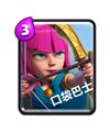 评语:在中后期的战场上是属于恶心人和消磨对方的皇家塔血量的卡牌,防可挡王子冲锋、可耗敌方肉盾血量,攻可跟上肉盾打输出、可消磨敌方防御塔血量,在你不知道用哪一张卡时就拍出这张牌试探敌方反应,绝对不会错,反正才消耗两点的圣水,值得你带上传说的万金油级补位卡。(建议与弓箭手二选一培养到最后)