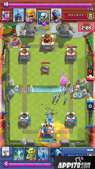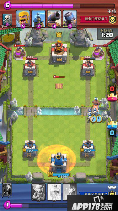 这是我冰猪干了对手一波后对手防守单位配合巨人过河被我毒药完全限制住了。配合小闪加农轻松全解