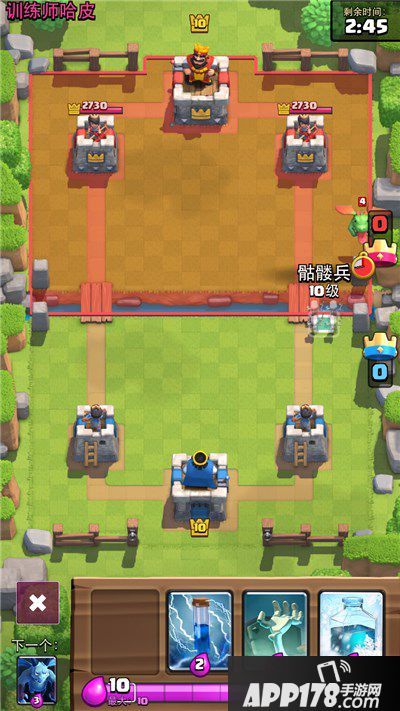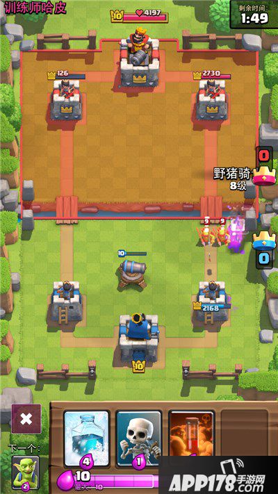 小电击(箭雨):我更喜欢叫它的英文名zap,这是一张十分需要等级的卡,zap的伤害可以秒杀同等级刀布林/矛布林/小骷髅外,还可以让对手的苍蝇只剩一丝血(副塔一箭一个),对于冰猪卡组来说,他亦是一个小冰冻,关系到你的猪能否多敲一下塔的血,你的刀布林能否在前线多击杀一个生物,一手好的zap可以扭转整个局势。卡组等级越高,zap的作用就越明显。如果你的整体卡组等级在3/5/8之下,推荐你把zap换成箭雨。