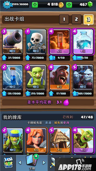)。如果经常碰到建筑多的卡组,可以把毒药换成大闪电。