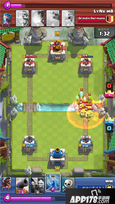 加农炮(墓碑):防御建筑原来这个位置我是带加农炮的,惊闻新版本加农炮被砍了10秒的持续时间,虽然影响不大但毕竟是一次削弱,我考虑再三决定观望观望,加农炮是一个可以用来当小坦克的防御建筑,一个等级不被碾压的加农炮,是可以放在黄金点配合左右副塔单吃对手一头猪/黑骑甚至是龙宝宝这种单体伤害一般的4费生物,来完成赚费效果,亦可用来前置抢桥头阵地或者解对手上桥公主,这是一张3月23号改版前特别好的一张防御建筑卡。再来讲讲墓碑,墓碑经过多次削弱后,已经非常弱了,但用在这个卡组中,却是意外的契合,除了黄金点勾人外,墓碑生成的小骷髅是可以配合猪和冰来达到意想不到的效果的,楼主就有好几次,在墓碑爆掉之后直接猪带队N个小骷髅过河冰冻干的对手措手不及。在这个卡位的选择上,建议大家选择加农炮,但墓碑的表现更为凶残,在加农23号削弱后,也是个不错的选择。