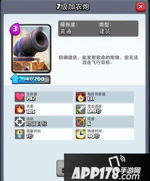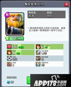 这张卡是一个无用的单卡,作为一个远程单位,需要的是DPS而不是HP。而皇家巨人恰恰是一个DPS很差,HP不低的单位。AI是只能攻击建筑,且是单体,这让他完全无法处理敌方兵种,甚至不能在打塔的时候溅射一下周围的小兵。而不低的HP在躲在其他兵种的保护下毫无作用。