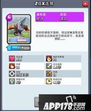 这张卡的设计初衷可能是要做一个生存能力强而且射程远的攻城兵种吧,但是为了平衡,给了他很低的移动速度,和不够看的攻击力。