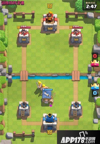 一般来说前两分钟是拿不到皇冠的基本,那么前两分钟就安心防守吧。房子尽量不要放在底部,放在中间,这样可以吸引野猪气球火力。起手除非对面下塔,否则不要下房子,特别是墓碑和黄毛房子,就是对面下塔了,也不能太急着下这两个。第一个房子,一般是拿来防守的,所以放个蹭血的哥布林小屋最好,放这个位置最好,这边是训练营就随便下了,开局这样下很容易输千万别……