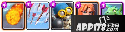 火球:对于新手来说箭雨绝对好于火球,但是我认为还是带上火球好点。因为仅仅是只多了一费可以解决的东西多了好多,黄毛弓箭手火枪幼龙有的能炸死有的能炸好多血,而且还能当做一个不错的补刀手段,当然缺点是范围小点速度慢点,不过对于想低级克高级的人来说,这点技术必须有。