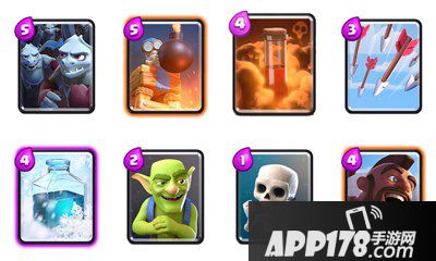 此套卡组的主输出还是依靠野猪骑士,冰冻术用于辅助,新出的毒药法术在低分段还是比较少见的,但不是说他不好用,而是会用的人不多。高分局出现毒药法术的频率较高,毒药法术能快速的消耗对面兵种的血量,还能造成减速效果,用来消耗坦克英雄非常好用。