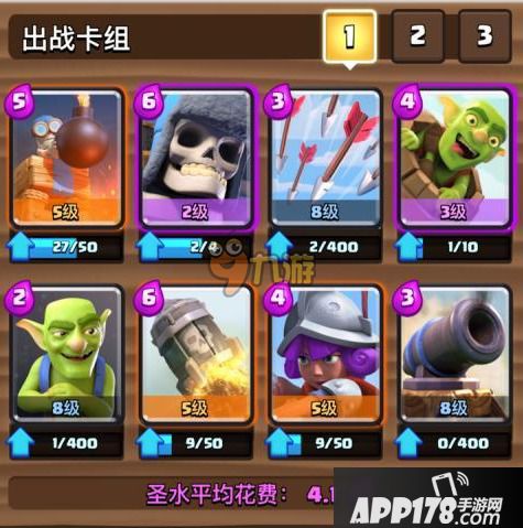 再说一下起手,起手有炸弹塔就丢炸弹塔在黄金位,没有塔有桶就直接丢桶,看对方如何解。没塔没桶就丢小炮在黄金位。没塔没桶没炮就丢哥布林。如果连哥布林都没有就沉底骷髅巨人。火枪一定不要提前用,火箭在对方丢水罐的时候可以连女王塔一起砸。