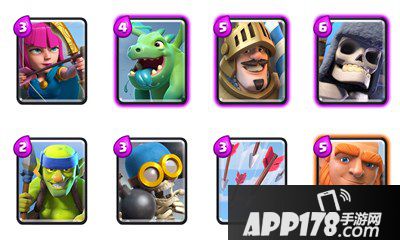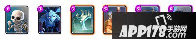 可替换卡牌:气球兵、骷髅巨人和王子,这三张卡牌是推进流卡组的核心,但费用都很高,不推荐三张卡同时上场,三选其二。值得注意的是,骷髅巨人死亡后掉落的炸弹威力巨大,当前版本骷髅巨人死亡后炸弹引爆时间为3秒,使用得当仍然能取得不错的效果。