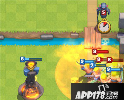 这两张卡都是配合毒药最优秀的卡,瓦基丽武神可以有效地把部队牵制在毒药里面,并且输出大量的AOE伤害,而野蛮人主要可以用于把对手麻烦的单卡解掉,过河之后野蛮人骑脸输出没人敢忽视。
