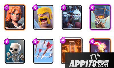 A5-A7推荐卡组毒药气球流,是一组拥有非常优秀冲杯卡组,稳定的进攻能力和防御能力让这个卡组在A5-A7的冲杯过程中有着不俗的表现,熟练使用之后直上3000不是梦~!