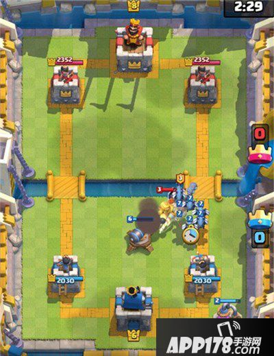 进攻蹭血核心卡牌,大多时候在赚费后并且清楚对方手里卡组的情况下放下,不不需要压岸加农之类的保护,大多时候对面的解法有 苍蝇(剑雨秒)黄胖子或者王子(小骷髅吸引仇恨让迫击打出一发伤害就够)对面杂兵则可以不管,迫击最少也能打出两发炮弹贡献400伤害,这就已经很赚了。