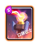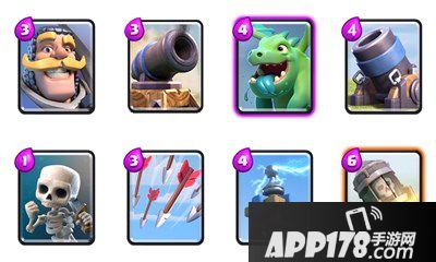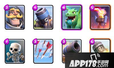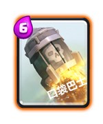 飞龙宝宝:我的第一张初始紫卡就是宝宝龙,陪伴我度过了无数个寂寞的夜晚,我曾自称宝宝龙骑士,只因宝宝龙实在太强,没有宝宝龙的套牌玩不来,也是我唯一一张4级紫卡。宝宝龙也许是游戏中最全面的一个兵种,飞行,AOE伤害,不俗的肉度,是卡组中由守转攻的发起者。很多时候当你拍下迫击炮,对手会不惜一切代价出兵企图尽快干掉它,什么野蛮人啊哥布林啊弓箭手啊,这时你哈哈一笑,拍下你的宝宝龙,喷出地狱烈焰,烧尽敌军,赚尽费用,然后他还能扑闪着双翼,飞过去喷对手的塔两口,帮你补足不够的伤害,然后你补完塔,下第二个迫击炮,对手崩盘。这就是迫击炮的精髓:迫使对手亏费解你迫击炮,滚雪球。如果对手会玩,事先用加农炮或是炸弹塔抢占住桥头不让你架炮,你也可以派宝宝龙去一口口喷掉。