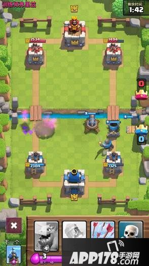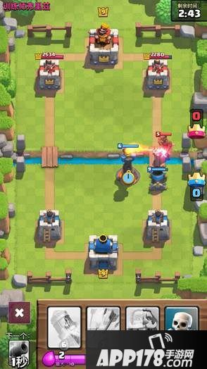 小骷髅:全游戏唯一一张1费牌,不要小看他,他别名叫大皮卡勾引者,小皮卡勾引者,王子勾引者,地狱塔勾引者,火枪手围杀者,etc.这个卡位其实就叫炮灰,我试过近战哥布林,但其实4个小骷髅的伤害不比3个哥布林低多少,而且在最关键的炮灰的指责上,一个1费抗大皮卡4刀,一个2费抗3刀,这差距不是一心半点。千万记得在对方王子冲锋向你的炮塔时,用小骷髅吃掉他的冲锋伤害。使用时,不要很实诚地放在对方大皮卡或者王子旁边,尽量等对方攻过来后,放远一点,勾引对方过来,记住你的边塔攻击力很高,能多A一箭是一箭。很多玩家遇到对手黑白双骑冲锋过来就慌张地不知如何防守,其实只要你手速够快,先放骑士或者地狱塔加农勾引住一侧的黑骑,然后马上在王子那侧放下小骷髅,然后对手9费的攻势就被你完美解了。