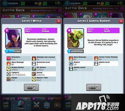 这两张紫卡是为这个卡组增添色彩而存在的,女巫的大部分作用是防守,只有在对手于正面战场投放巨人的情况下,才把女巫放到正面战场上进行刷兵。而哥布林桶则是一个很强的伤害爆发点,无论是正面碾压需要伤害还是需要偷塔,哥布林桶都能有效地提供足够多的帮助。