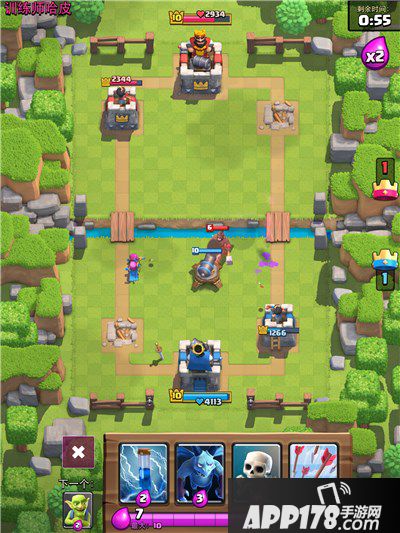 弓箭手作用主要在于远程输出刚过桥的兵,配合小钢炮基本无伤解决野蛮人,必要时刻可以在没法解决亡灵大军时硬顶,这样大约只剩下2-3个残血的亡灵会进攻公主塔,进攻时可用来蹭血,因为弓箭手走得慢所以在起手较差的情况下可以直接裸下在中间黄金位的位置,下的位置是1防对方火球或箭雨直接连带弓箭手公主塔一起打了,2在弓箭手走到桥位置时正好10滴圣水进行野猪或哥布林的配合。