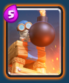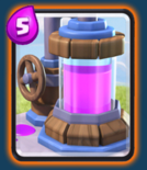 迫(pai)击炮(念了20年破击炮,真是没文化)经过修改之后,变成了目前非常流行强势和稳定的一张牌。基础数据来说,迫击炮的射程是12,血量很优秀,单发伤害很高并且是范围伤害,很容易打死皇家塔周围的单位(比如公主、弓箭手和哥布林),目标锁定比较特殊,施放时小圈之内的目标无法攻击,大概射程是4-12之间的范围。迫击炮的持续时间只有30秒,部署时间需要3秒,看似很笨重,但是考虑到迫击炮4费的消耗和高额的血量及伤害,很多时候是稳定的远程范围输出,,也就是不讲道理的轰炸。迫击炮理论上可以打6发,9级可以累计造成1554点范围伤害,十分惊人,虽然很容易被攻击导致连发失败,但是作为一个嘲讽单位,迫击炮很容易引诱对方盲目进攻亏费,最终在下一波攻势中崩盘。