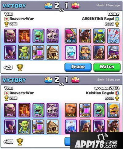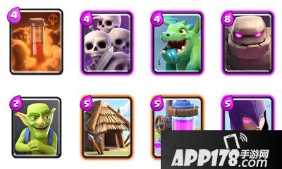 哥布林:2费可充当过牌,有人可能会疑惑为什么不用长矛,那是因为我感觉防空力量已经够了,长矛对付地面单位输出太低,之前我是用的长矛,一直徘徊在1900老上不去2000,就是因为输出不够,防野猪,王子效果没刺刀好,进攻上在有肉盾掩护下能造成成吨伤害。