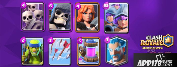 强大的后排输出确定后,我们必须寻找靠谱的前排:骷髅王是第一个被确定的兵种,出色的防守反击效率令人信赖,而且这套有足够好的拉扯能力,确保骷髅王的亡语炸弹能炸到很多人。而在三火枪的掩护下,骷髅王近塔也不是那么困难的事情了;女武神在BUFF后一举成为了热门兵种,而点输出爆炸的三火枪在面对兵海的问题也能被她解决;同样,骷髅海作为可靠的兵海,为我们前排需求补上了最后一块拼图。有了这三种前排的保护,三火枪的输出环境就很稳妥了。