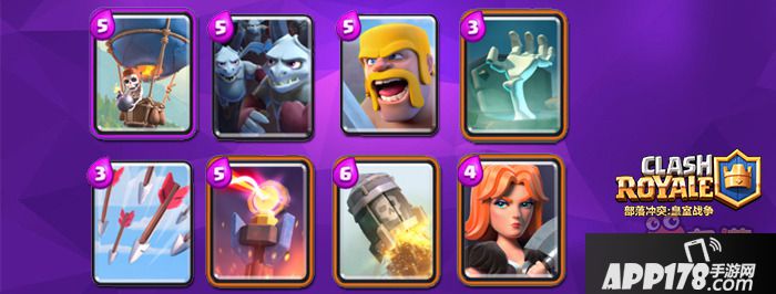 气球作为套牌的进攻主体,在上次更新吃了BUFF之后,最近慢慢开始流行了起来。毕竟在一般套牌里,能应对气球的卡无外乎就是六个核桃和火枪。前者的话,箭雨可以搞定。后者稍微费劲,不过你可以用六个核桃掩护出击。气球的优点就是弱点少,而且单发伤害极高,打中一次塔就是生涯无悔了。
